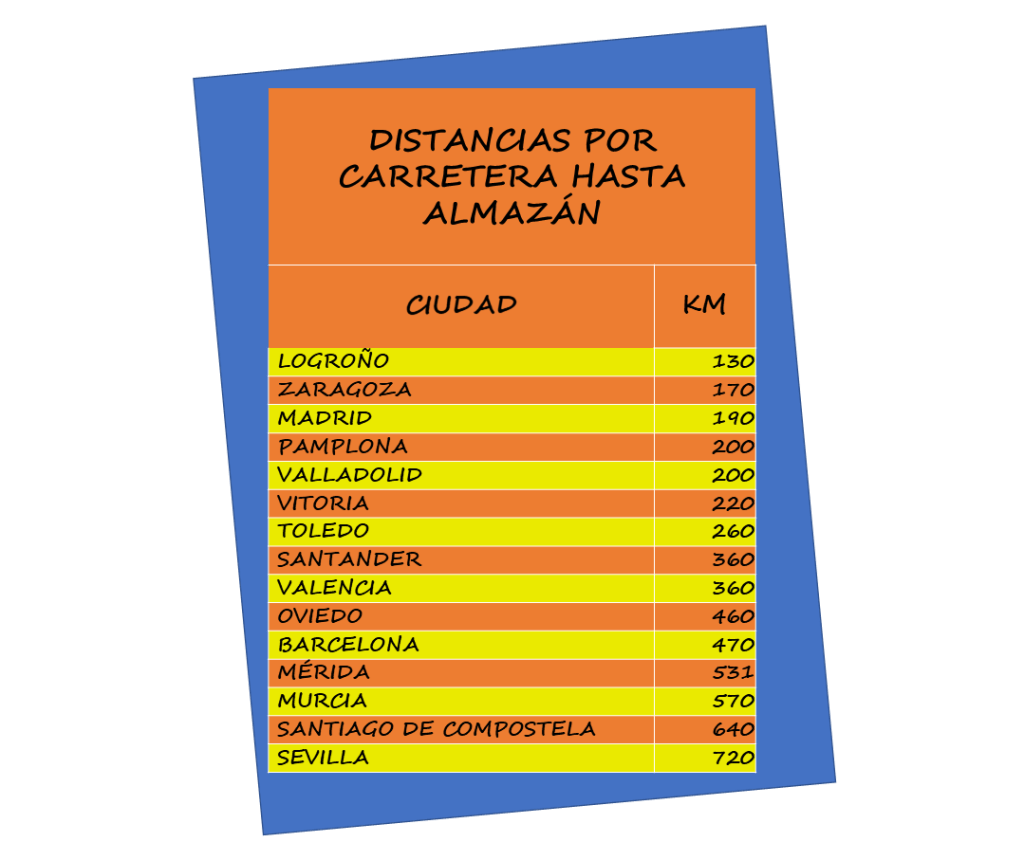 En esta tabla orientativa, podéis ver las distancias a un buen número de ciudades.