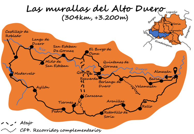 No obstante, los diseños circulares de las rutas y la interconexión entre ellas, permite que localidades como Berlanga de Duero, El Burgo de Osma, San Esteban de Gormaz, Abejar, o la misma Soria, sean también muy buenas opciones como punto de partida.