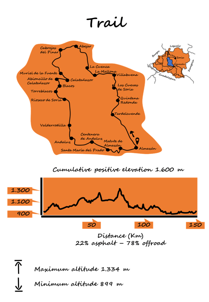 We continue on a paved road to Las Fraguas, and unpaved to La Mallona. Again along a paved road, calm and with good asphalt, we pass underneath the Duero Highway, to reach la Cuenca, going through the first groves.