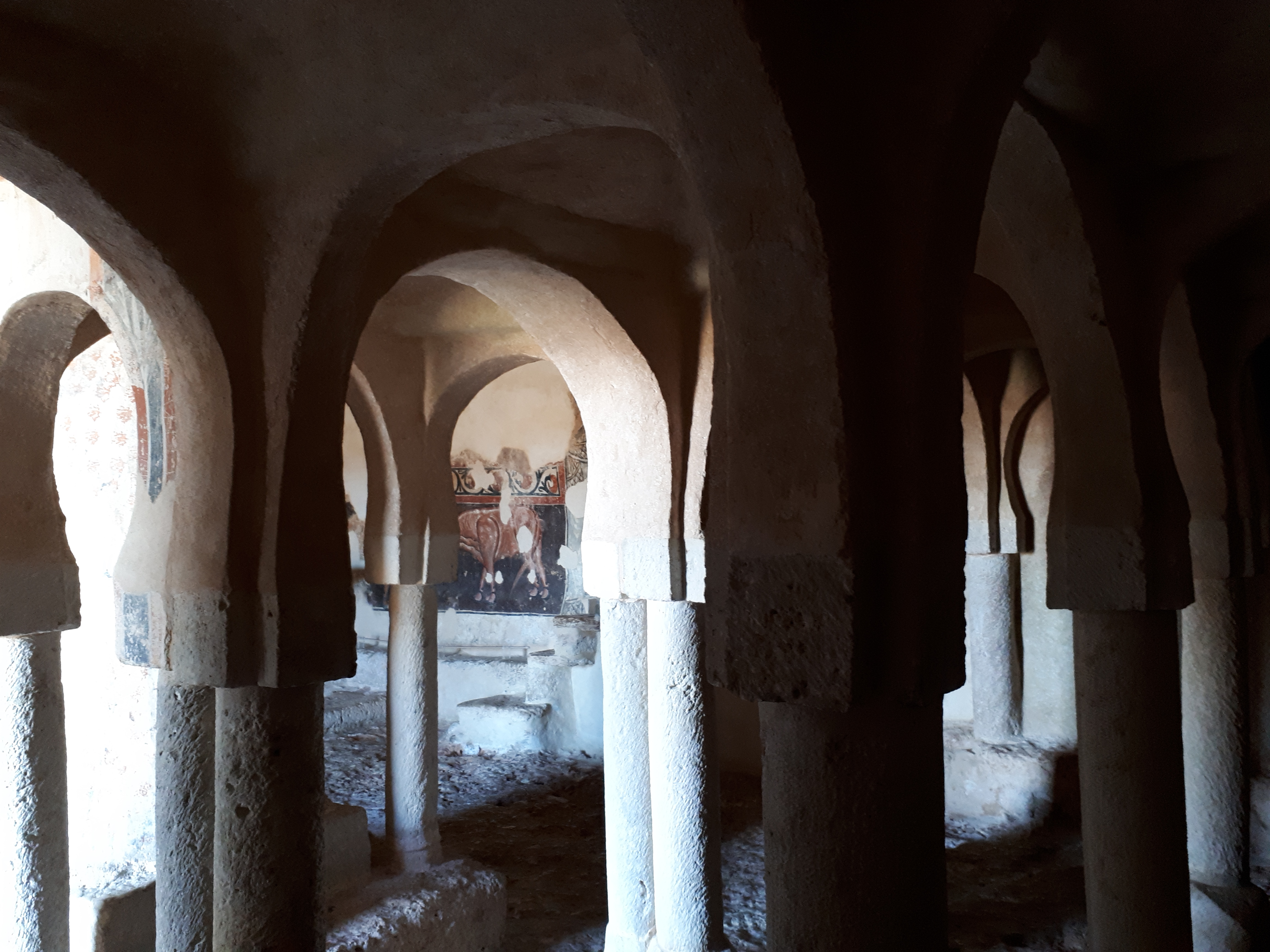 On the tour of its interior, which reminds a small mosque, we see how Christian and Arab cultures are mixed, both in the architectural elements and in what remains of the original frescoes.